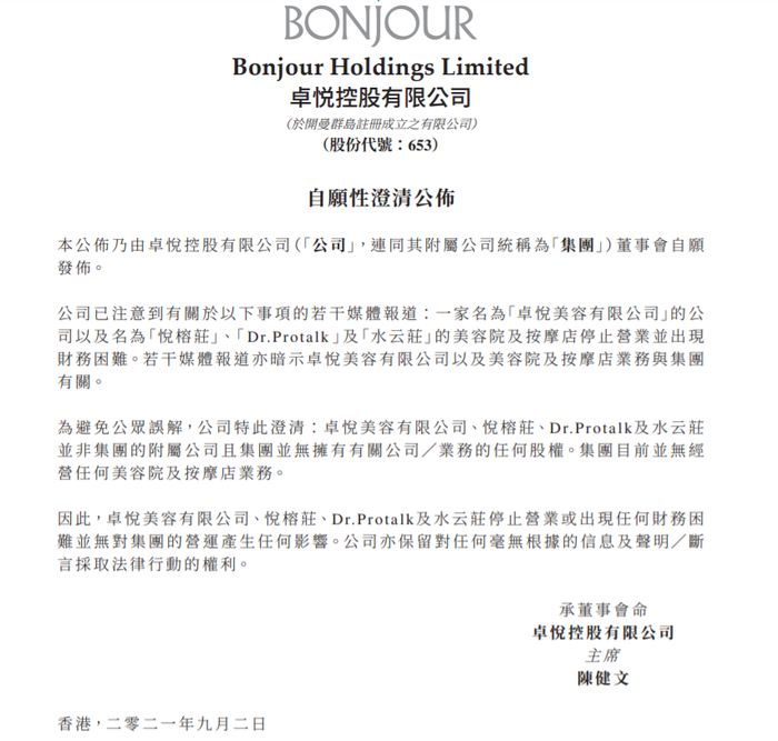 對於有媒體報道卓悅美容有限公司旗下悅容莊等公司停業卓悅控股 00653HK 0000 0000 回應指2015年1月1日起卓悅美容有限公司悅榕. 美容之業務 卓悅美容擁有8 間附屬公司主要於香港澳門及中國從事經營19 間纖體美容及保健中心悅榕 莊Dr Protalk 及水云莊業務卓悅美容於截至2012 年及2013 年12 月31 日止兩個年度 之未經審核綜合財.