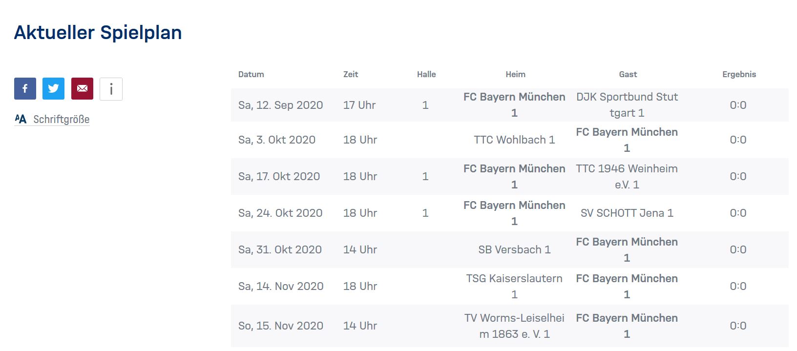 Aktueller Spielplan Fc Bayern Munchen Tischtennisabteilung